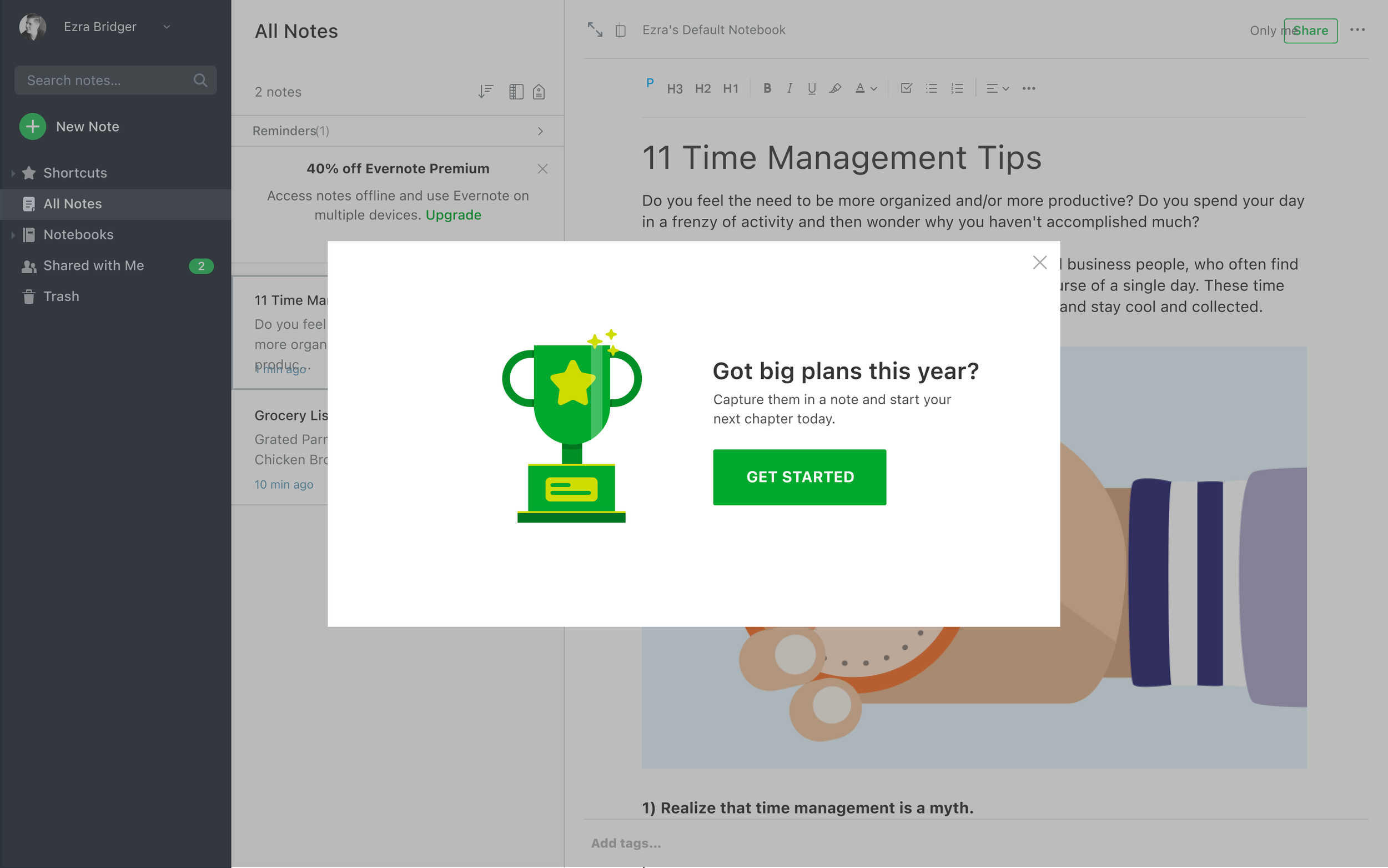 This journey leveraged two overlapping events that marked growing interest in improving personal productivity—the new year and the “Great Resignation.” The messaging highlighted the ways our app’s productivity tools could help customers get organized and achieve their most ambitious goals.