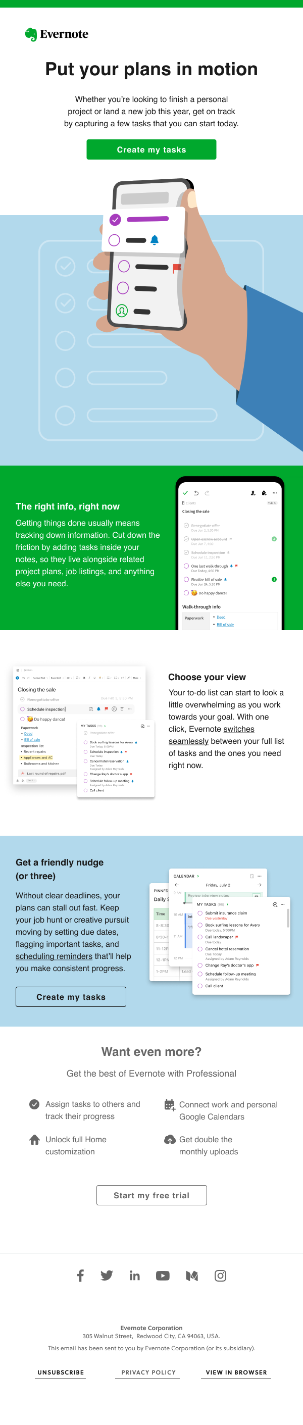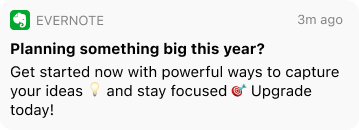 Here, I focus on the app’s to-do list feature—”Tasks.” There’s also a natural connection between to-dos and the core message of accomplishment, so this felt like a strong ending note for this journey. Note that the last section of this email (and the others before it) includes an upsell message. This helps us push a higher-value subscription tier without making the content feel too “sales-y.”